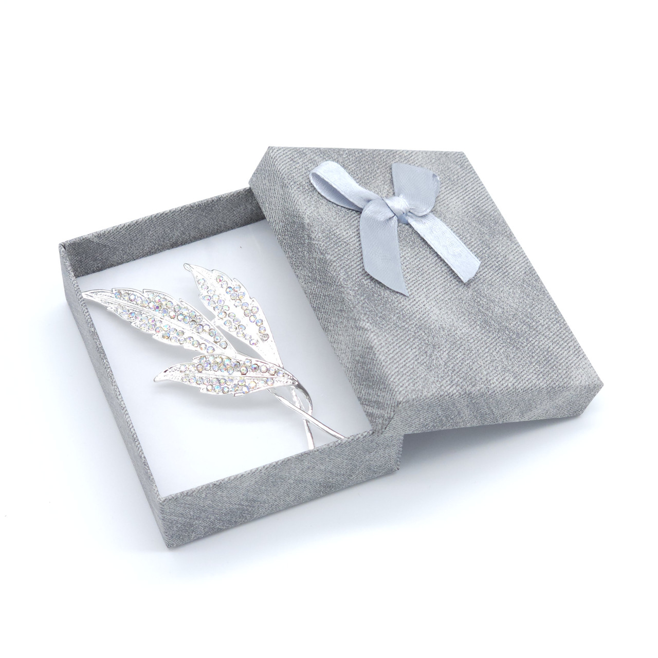 Ця витончена брошка у формі сріблястого листка привертає увагу своїм елегантним дизайном та блискучими кристалами, які додають їй особливого шарму. Виготовлена з високоякісного металу з золотим покриттям, брошка чудово підійде для будь-якого випадку, надаючи вашому образу нотку природної краси та вишуканості.